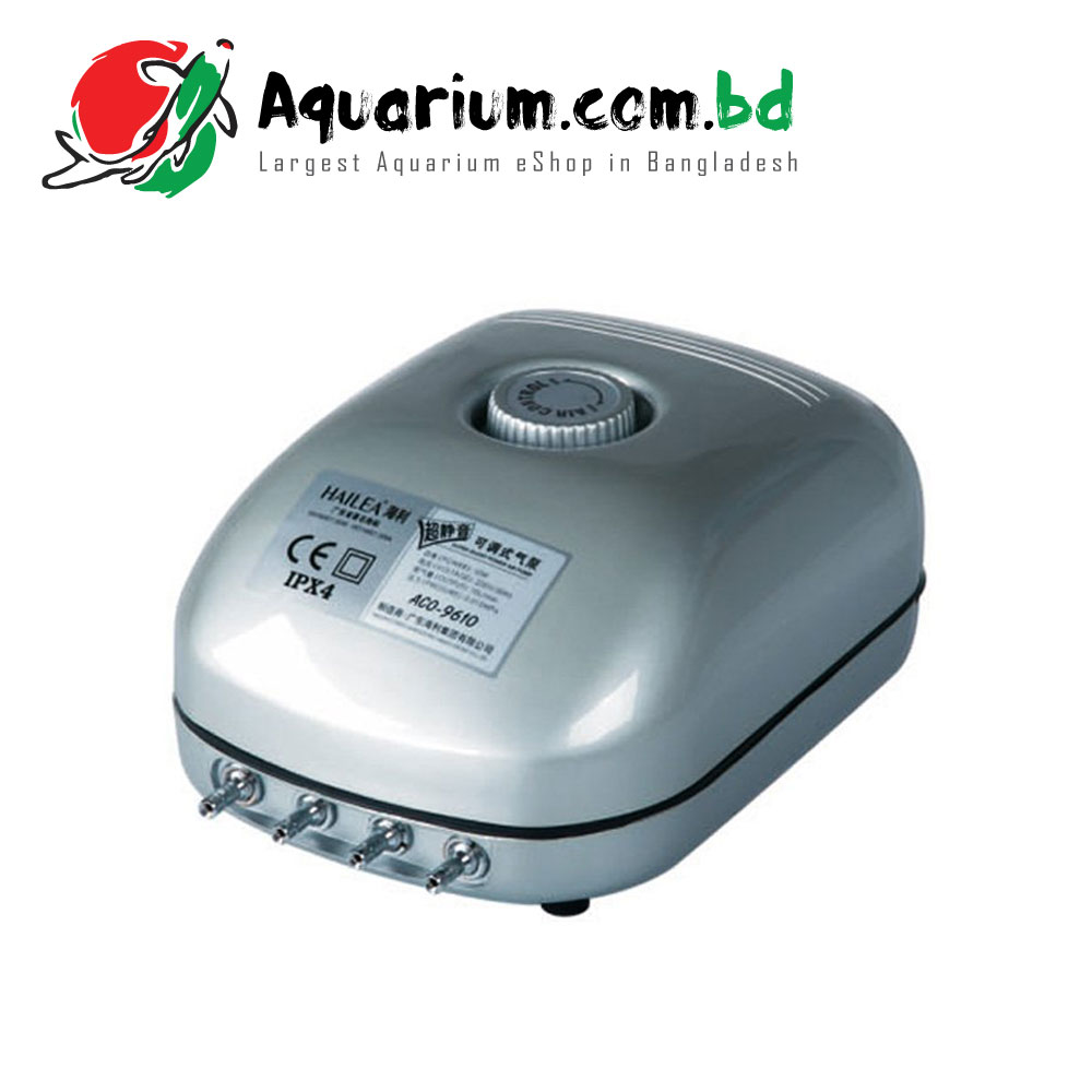 This HAILEA Air Pump features an adjustable output offering maximum flexibility in a range of outlet options. It is super silent with a multilevel muffler. It has an output of 4mm and a low power consumption. It produces 10 litres per minute. Our range of Hailea air pumps all feature adjustable outputs offering maximum flexibility in a range of outlet options. The diaphragms are easily replaced when needed, so you will have the use of these pumps for years. Multiple outlet and output versions are available. These pumps are designed for continuous use but also have low rate of power consumption.