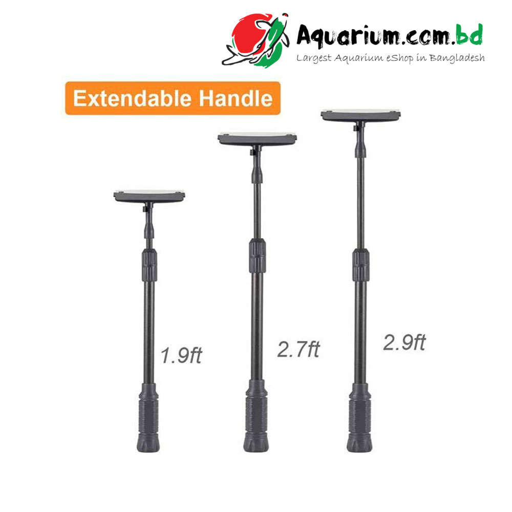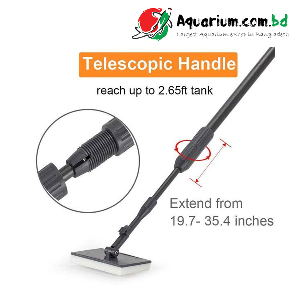 - Telescopic handle Premium carbon fiber composite construction, it can be extended from 19.7 inches to 35.4 inch which is long enough to clean up to 2.65 ft depth tank. Threads together with extension tightly no flexing, it can prevent water go into a pole.