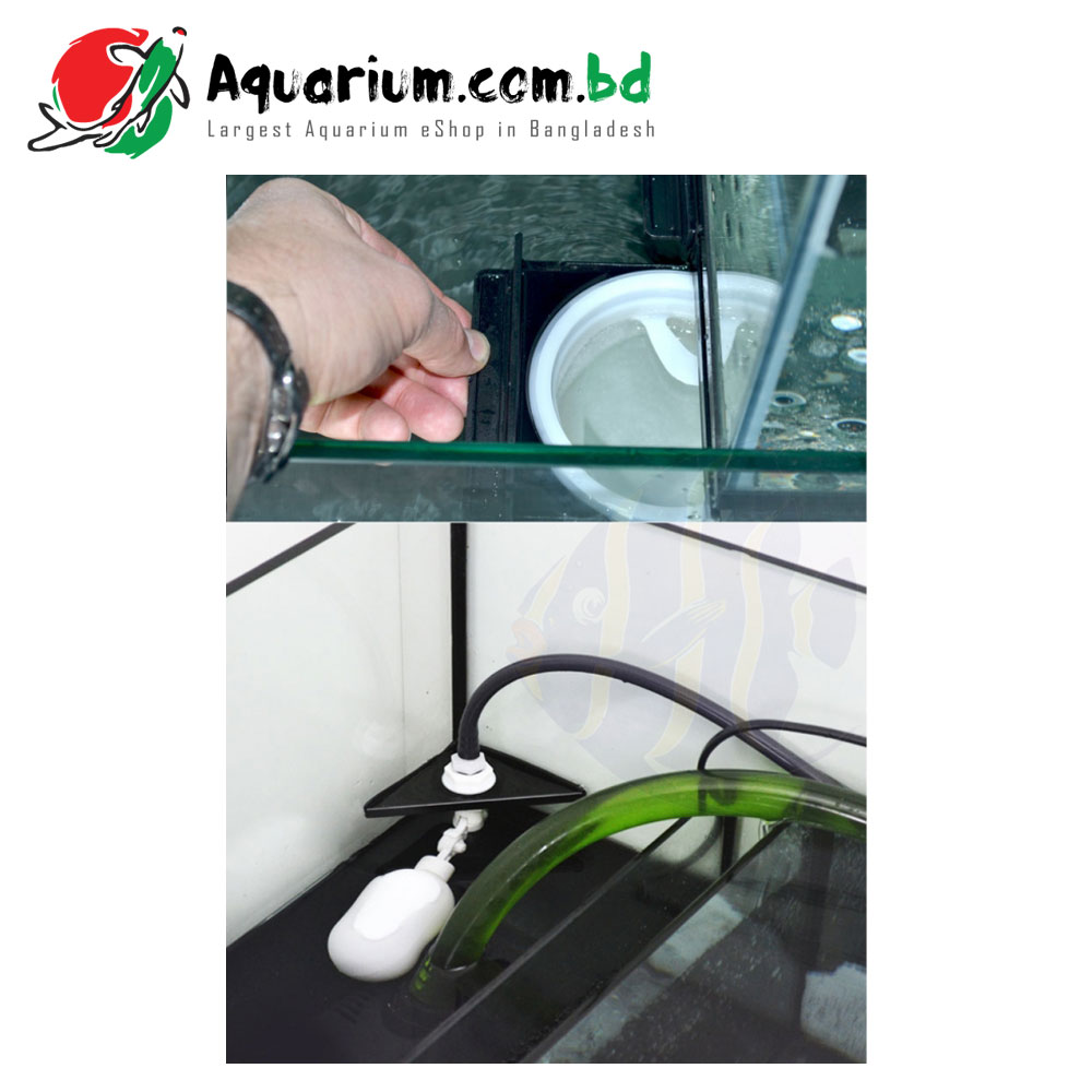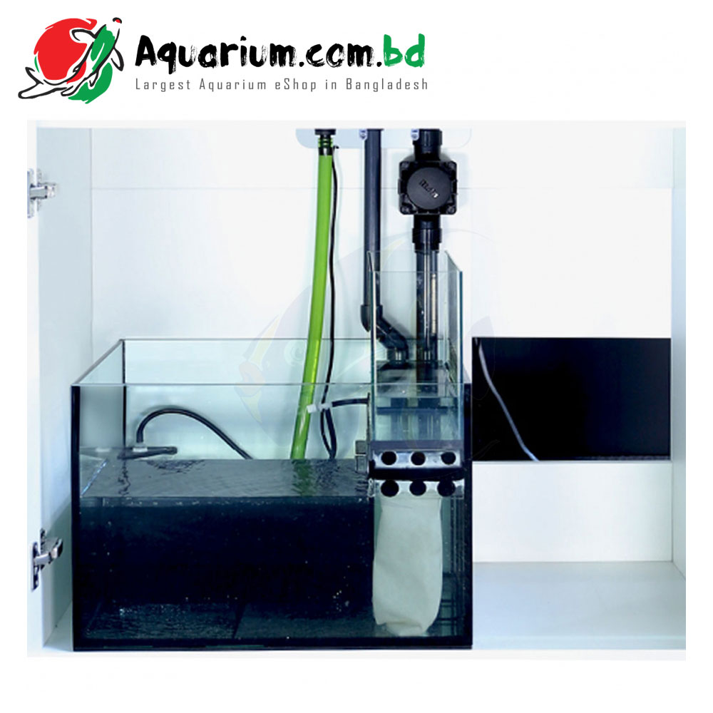 The sump includes a filter sock holder and sock to keep large pieces of debris and detritus from clogging pumps and other pieces of equipment. The water can then flow from the filter sock into the skimmer compartment where the water will keep a steady level to aid in the best performance in your choice of skimmer or any other filtration components that you choose to include can be placed there. The water will then flow through the final bubble trap and into the final chamber where the return pump (not included) can be placed to pump water back through the Reefer tanks return plumbing.
